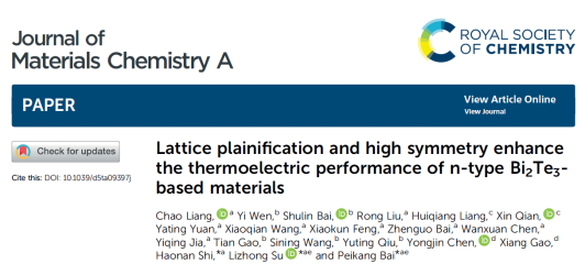 近日,威廉希官网作为第一完成单位的研究论文“Lattice plainification and high symmetry enhance the thermoelectric performance of n-type Bi2Te3-based materials” 在材料领域国际知名期刊《Journal of Materials Chemistry A》正式接收并在线发表。威廉希官网博士研究生梁超为第一作者,宿力中教授、白培康教授与石浩男教授担任共同通讯作者。