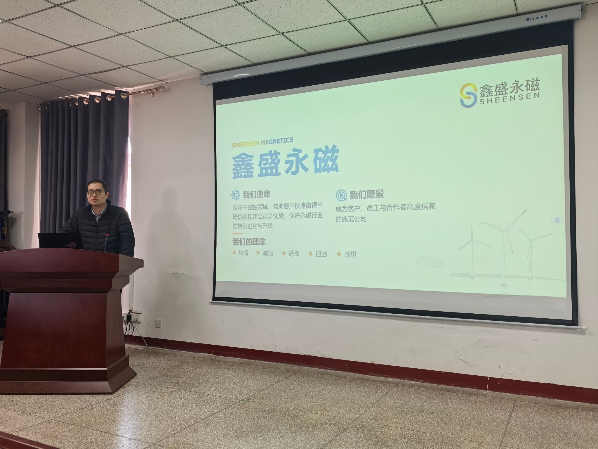 随后,公司人力资源部副部长张玉升围绕企业文化、公司发展历程、核心业务、技术优势、行业地位及未来发展规划展开详细介绍。他重点讲解了永磁材料行业的发展前景与市场需求,结合公司生产研发、技术创新、人才布局等实际情况,清晰梳理了本次校招的岗位需求、招聘流程、薪酬福利、职业晋升通道及人才培养体系,针对性匹配材料学科毕业生的专业特长,为毕业生提供了多元化的就业选择。