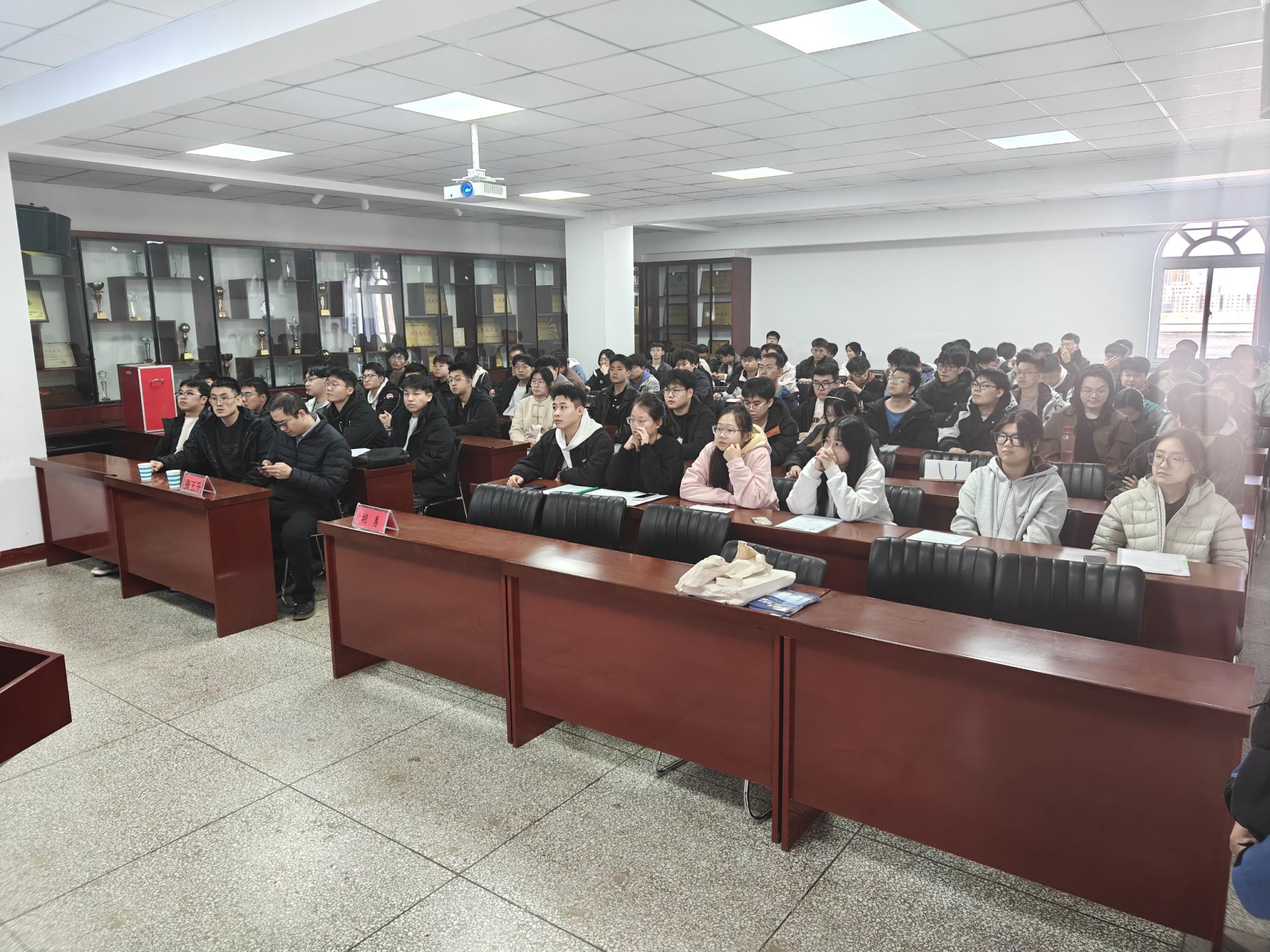 互动交流环节,毕业生们结合自身专业方向、求职意向,踊跃提问交流,围绕岗位工作内容、实习安排、职业发展规划、薪资待遇、工作环境等核心问题积极提问。公司人力资源部副部长张玉升逐一耐心解答,细致分享行业发展经验与职场成长建议,帮助毕业生全面了解企业用人标准与岗位核心要求,消除求职困惑。毕业班辅导员秦明杰、王保仁也现场为毕业生提供求职指导,提醒大家完善简历、把握应聘节奏,鼓励大家主动投递简历,积极争取就业机会。